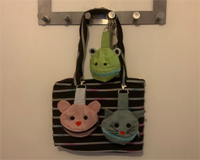 Wenn man mit Babys und Kleinkinder unterwegs ist, benötigt man immer mal ein Taschentuch. Auch ist es gut einen Ersatzschnuller für die kleinsten dabei zu haben. Die Schnuller Tatü Tasche ist bestens geeignet um Taschentücher und Schnuller zu verwahren. In den Bauch der Tasche passen 10 Papier Taschentücher. Und im Kopf findet der Schnuller platz. Dieser wird an der Zunge befestigt, damit er nicht verloren gehen kann. Der Bauch der Tasche kann mit oder ohne Reißverschluss genäht werden. In diesem Set sind 5 verschiedene Taschen enthalten. Ein Bär, ein Frosch, eine Katze, ein Junge und ein Mädchen. Die Taschen sind ca. 33cm hoch.