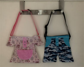 Kinder haben immer allerlei Kleinkram, was sie gerne mit sich umhertragen. Und um dies gut verstaut unterwegs dabei zu haben, eignet sich hervorragend das Kinder Taschen Set Sabine. Das Set enthält eine Umhängetasche in Form eines Shirt, diese hat eine Größe von 34 x 23 cm. Eine Umhängetasche in Form einer Hose, diese hat eine Größe von 23 x 23 cm. Und ein Schminktäschchen in Form eines Kleides, hier kann man Stifte oder Schminke drin aufbewahren. Diese Tasche hat eine Größe von 10 x 18 cm.